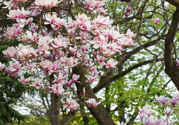 Die Blüten der Magnolie erscheinen vor dem Austrieb im März bis April in den Farben weiß, rosa oder rot mit einem intensiven Duft. Es gibt jedoch auch später blühende Sorten wie die Sommer-Magnolie die im Juni zu blühen beginnt.