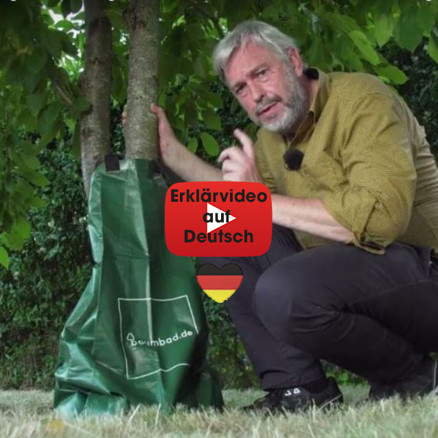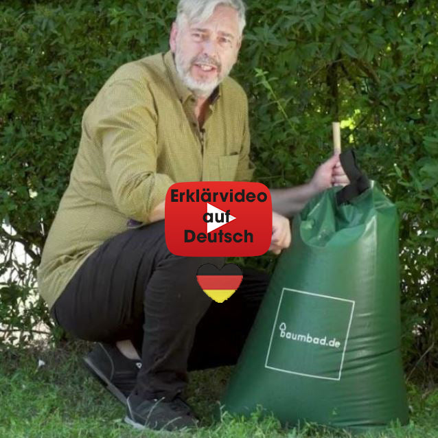 Ein Baumbewässerungsbeutel ist die ideale Gießhilfe für Bäume. Der Beutel wird wie eine Jacke um den Stamm gelegt, mit einem Reißverschluss zugezogen und dann mit Wasser aufgefüllt. Durch zwei kleine Öffnungen an der Beutelunterseite entweicht das Wasser langsam und tröpfchenweise und sorgt so für einen langanhaltenden Gießvorgang. Damit sparst Du Wasser, Zeit, Geld und wirst zum #baumretter.