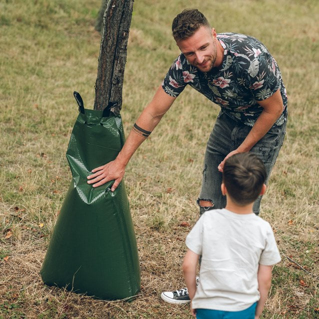 Bäume können schnell und effizient mit nur einer Baumbeutelfüllung von 75Liter bis zu 9 Stunden bewässert werden. Bei den 100Liter Beuteln sogar bis zu 12 Stunden.